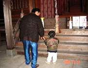 当神社の近所のお爺ちゃんとお孫さんのお参りです。お爺ちゃんはお孫さんの拝む姿に目を細めてありました。