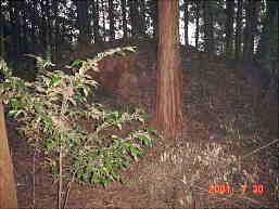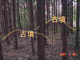 その林の中に古墳群が現れてきます。こんもりとした小形のようにあります。左写真には、二つの古墳が右写真のように写っているのです。