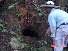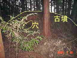 上写真の古墳に目の前にしました。穴のようなものが見えます。