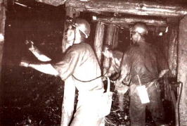 ![]() 採炭現場(昭和28年頃) (写真:「貝島炭礦の想い出」から) |