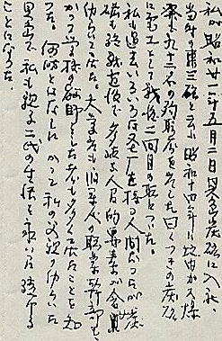 最近、右上図のような原稿(A4版編集にすると15頁)が、故井上芳邦氏の自宅から見つかりました。それは昭和55年1月から23回にわたって朝日新聞に連載された「20世紀の軌跡」の終了後にその編集に情報提供・協力したご本人が、いろいろな思いを自由に書き綴り、自分史の形で書き残したものと考えられます。その内容は、まさに貝島炭礦に献身的に身を捧げた炭礦労働者の姿であり、時は経っても私たちは、その生き方・考え方に学ぶことが多いと思います。 |