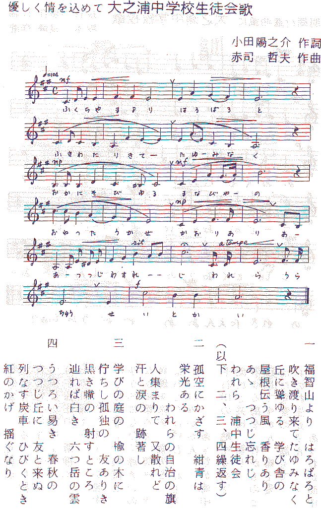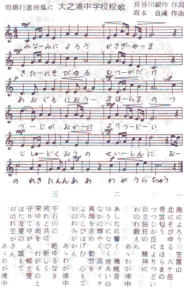 | ●大之浦小学校校歌 ●大之浦中学校校歌 ●大之浦中学校生徒会歌 |
