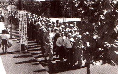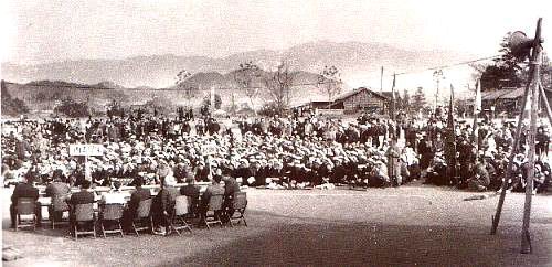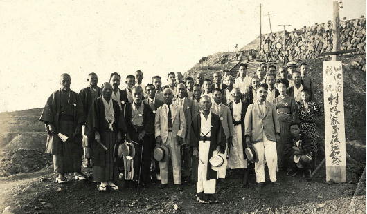 大正7年、宮若市笠松(笠松村笹ヶ峠及び八丁下)に満之浦露天堀を開始に伴って、家屋移転関係者記念式において(YN) |