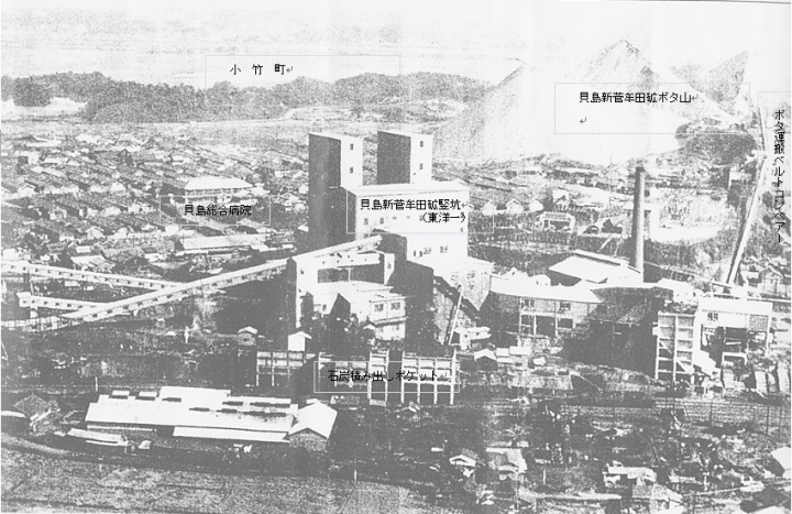 貝島新菅牟田砿竪坑周辺大パノラマ(昭和35年頃) |