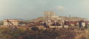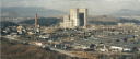 昭和60年、閉山9年後の新坑竪坑・煙突と炭住街(新坑中区)