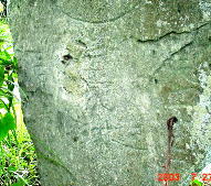 | 民家の右の木の下に、下写真のカッケン様が鎮座しています。 今から数百年前、この辺りに大きな「内山寺」があったということです。 |