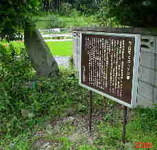 | 斜めに傾いているのが「ガッケン様」です。平成11年に立てられた真新しい説明板がすぐ側にあります。 |