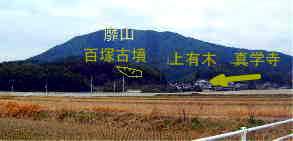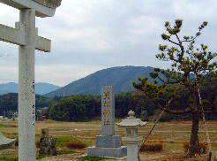 ![]() 笠松神社(上有木)から靡山をのぞむ 手前が現在の「笠懸の松」と言われています。 |