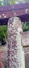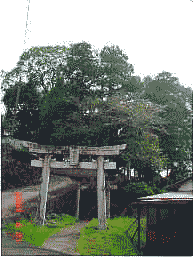 まず右上の鳥居をくぐり、石段をあがると拝殿が見えてきます。 周りは大きな木が茂り、古(いにしえ)の境に近づいたように感じました。 |