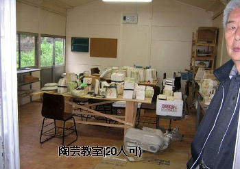 ![]() 陶芸を教えるための室です。 20人ほど可能とのこと。 皆さんいかがですか。お越しください。 |