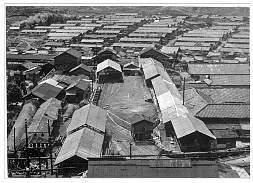 典型的な貝島炭坑の炭住街の光景 このような炭住街は、町内至る所に見られた。一棟あたり2世帯から5世帯の住居があった。 |