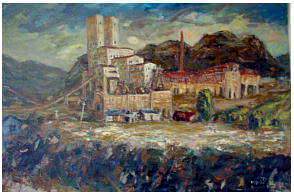 過去の炭坑の移り変わりを描いた100号などの絵画や写真などが、いくつとなく掲げてあります。そのいくつかを、「移り変わり」という視点で紹介しましょう。 |
