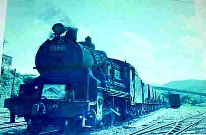 旧国鉄の石炭輸送列車 毎日幾度となく数十両の石炭貨車が出ていた。直方駅で編成替えして、 若松、八幡方面などへ輸送された。このような五坑、三坑、二坑(旧JR宮 田駅)などに、大規模な施設があった。 |