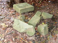 残念なことですが、本宮には、上写真の宝篋(ほうきょう)印塔はじめたくさんの塔がありますが、左写真のように壊れて放置されています。ザンネン!